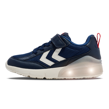 Die DAYLIGHT JR Sneaker vereinen Spaß und Funktionalität für die Kleinen. Mit elastischen Schnürsenkeln und einem kürzbaren Klettverschluss sorgen sie für eine perfekte Passform, während die blinkende Lichtfunktion zusätzlichen Spaß bringt. Das flexible und atmungsaktive Obermaterial bietet Komfort, und das hummel Logo-Detail rundet das Design ab. Perfekt für Spiel und Alltag.